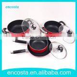 7Pcs Red Non-Stick Inner High Quality Aluminum Cookware Set With Glass Lids