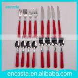 Red 16Pcs Stainless Steel Cutlery Set With Plastic Handles