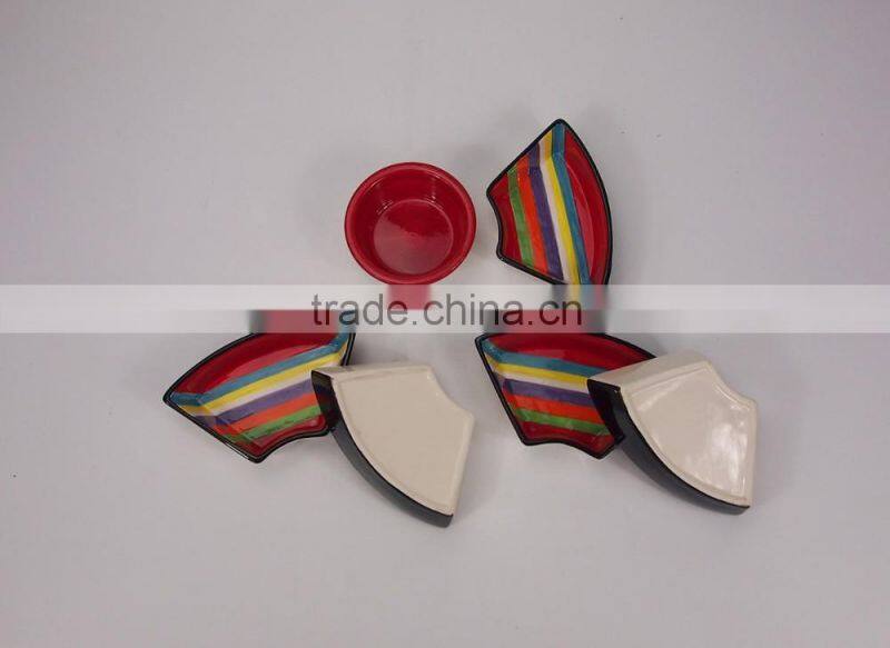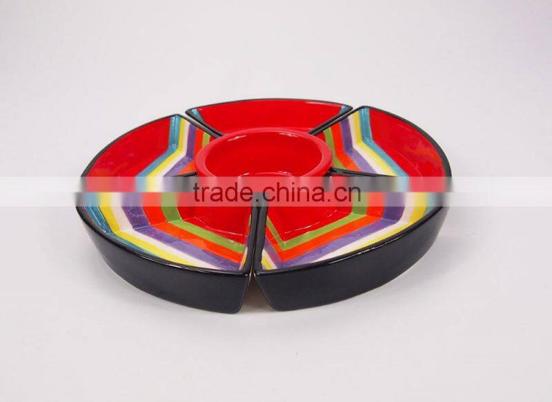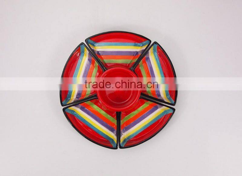 Colorful Lazy Susan Ceramic Snack Tray Bowl Plate Set