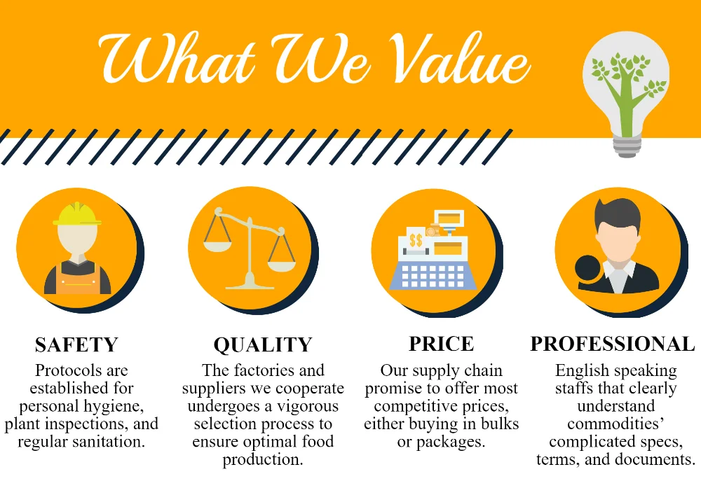 With over 25+ years of experiences in sourcing and exporting, we are well equipped with the knowledge in product regulations, packaging and quality requirements common in agricultural trading. As both a manufacturer and trader, we are capable in providing quality and competitively priced commodities.