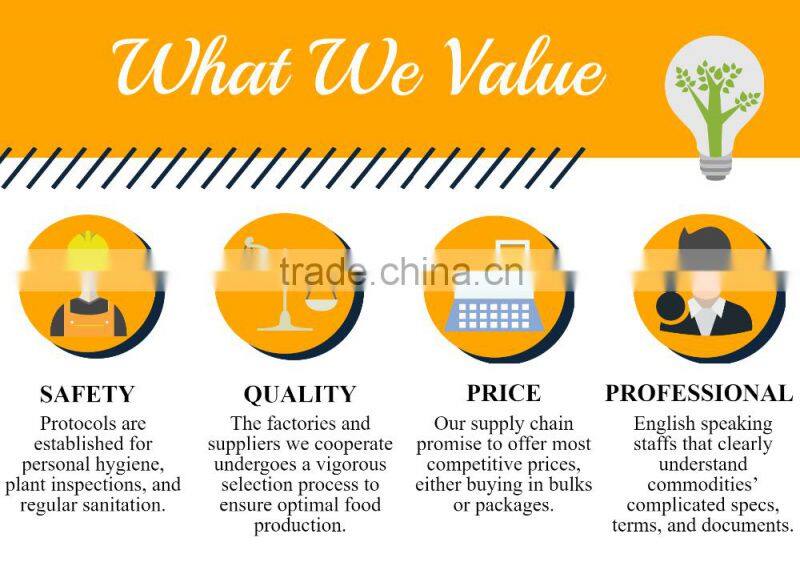 With over 25+ years of experiences in sourcing and exporting, we are well equipped with the knowledge in product regulations, packaging and quality requirements common in agricultural trading. As both a manufacturer and trader, we are capable in providing quality and competitively priced commodities.