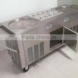 Double Pan Fried Ice Cream Roll Machine With Refrigerator