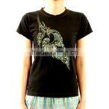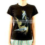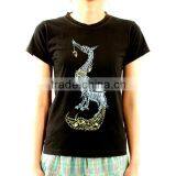 Thai Women Kinnaree THAILAND ART T-SHIRT PAINTED Acrylic Glitter FABRIC PAINTING BY HAND RARE PRODUCTS