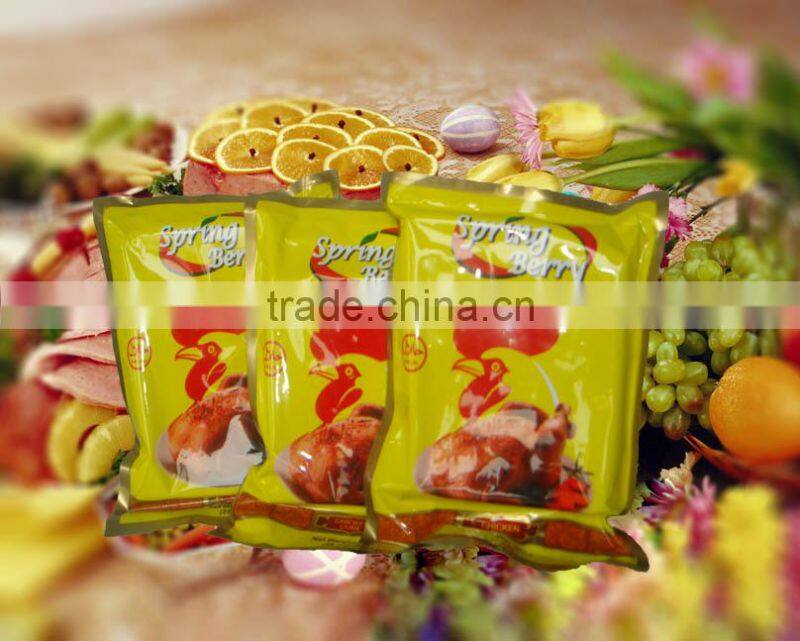 SPRING BERRY chicken seasoning cube is a kind of compound seasoning, was made with strict process and contain ingredients of chicken extract, MSG and salt etc.