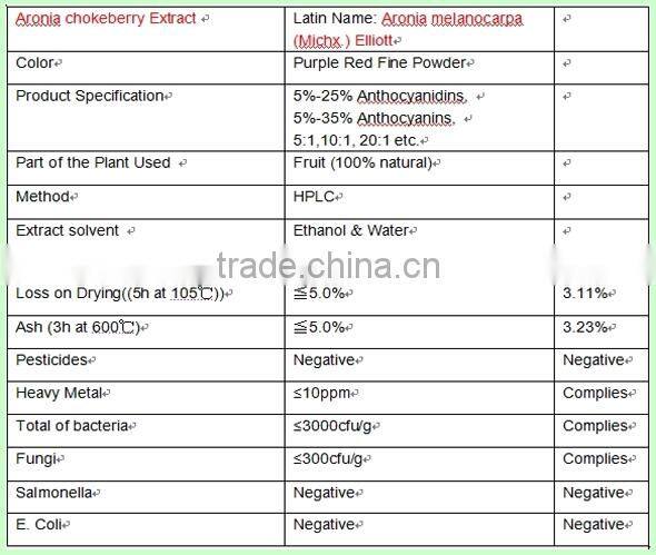 Home > Products > Anthocyanidins Extract > Aronia Extract 5:1,10;1 and 20:1,Anti-oxidant Anthocyanidins 5-25% Aronia Chokeberry Fruit Powder