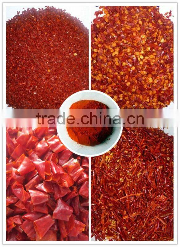 1, Chili: Bullet chili, American red chili, YIdu red chili, Sanying chili, Paprika, Erjintiao chili, Tianyu chili, Jinta chili, ect. All the above chili can be processed as chili ring, chili threaded, chili powder, chili sauce, chili flake, chili slice, chili granule, pickled chili, ect.