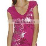 V.NECK PRINTED DYED LADIES T.SHIRT