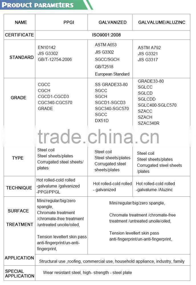 A: Our products including PPGI,GI coil,sheets/plates,Corrugated steel sheets/plates