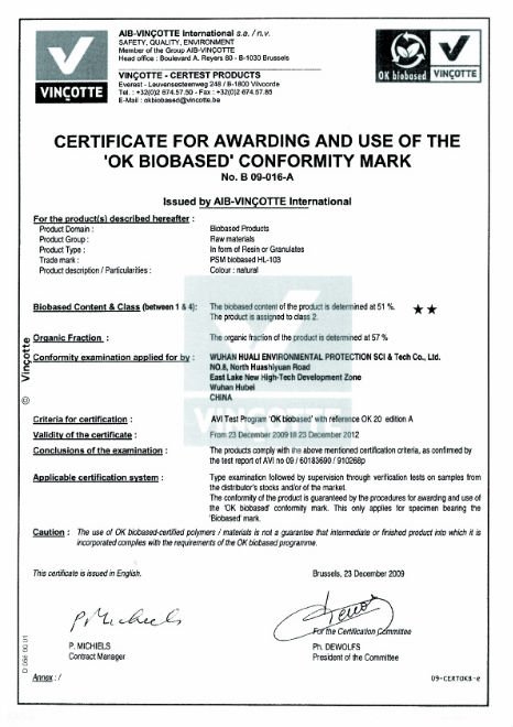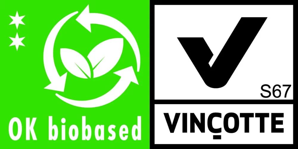 Use renewable and natural materials as the main component, Bio-based content tested in accordance to ASTM D688 Standards, Certificated by third party VINCOTTE organization, obtain "OK-Biobased" all stars label.