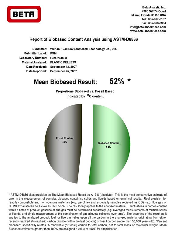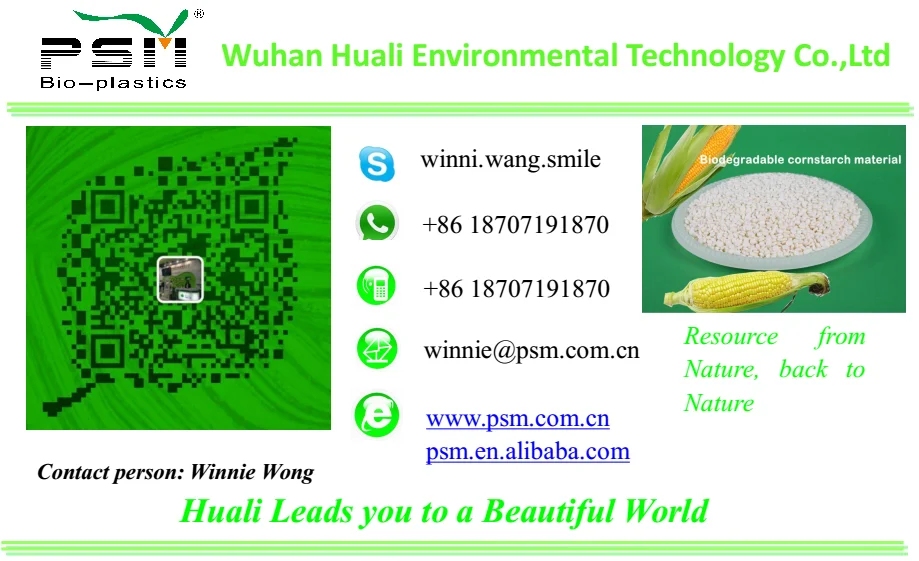 Wuhan Huali Environmental Technology Co.,Ltd. is a high-tech environmental protection technology company focused on the R&D, manufacture and sales of Bioplastic materials PSM® and PSM® based products , including 100%biodegradable and biobased materials&products.With its sales covering the global market over 10years, Huali has developed into a China-first, worldwide-second starch-based bioplastics materials and products manufacturer. Huali has been equipped with fully automated production lines and test equipment, annual production has reached 60,000metric tons.