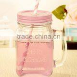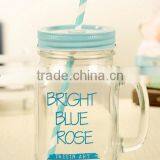 400ml Glass Bottle Mason Jars With Color Painted Wholesale With Caps and Straws