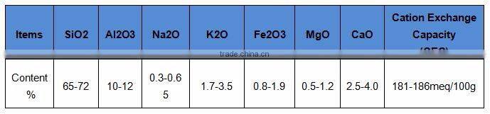 Clinoptilolite Zeolite (aluminum silicate) is a natural volcanic mineral, a micro porous inorganic mineral with an open, stable, three dimensional honeycomb structure negatively charged. The structure loosely holds cations (negatively charged ions) which are available for exchange. The ability to exchange one cation for another is called "cation exchange capacity"; Ningshu Zeolite with high CEC vaule "186meq/100g".