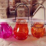 Holidays Colored Glass Candle Empty Jar With Metal Line