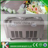 Popular US and Southeast Asia Thailand Style Double Pans Roll Fry Ice Cream Machine