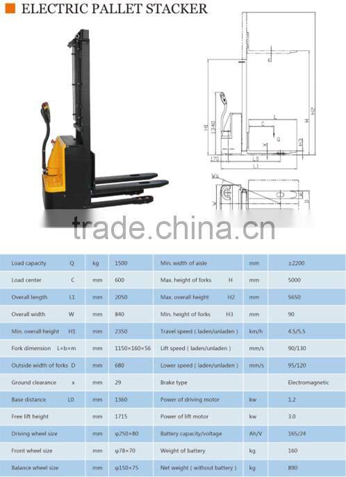 1500kg Capacity Stand-on Electric Pallet Stacker