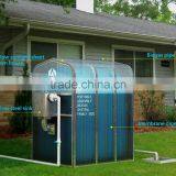 It makes you treat your organic waste locally, use the biogas for cooking and electricity, feed your garden with nutritious liquid fertilizer, save on your energybill and garbage disposal feeIt is the ultimate solution for families, restaurants , hotels and resorts to treat their organic wastes (food waste, sewage sludge and animal manure etc.) The product is composed of a green house made with hollow sunlight sheet and mental supporting frame, a membrane digester with a gas storage bag combined in one, a stainless steel sink, a stainless steel outlet, a biogas filter and a biogas booster pump. The membrane of the digester has the characteristics of antiaging, acid and alkali resistant and rodent resistance.