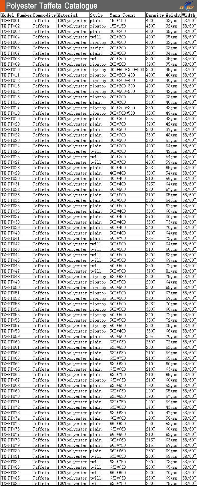 | Yarn Count | 10D*10D-70D*320D | Density | 190T-500T | |