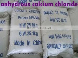 Anhydrate calcium chloride is an inorganic salt, which exists as solid or liquid. Solid calcium chloride is a white, crystal substance in the form of flake, granule, pellet or powder. With different crystallized water contents, it can be dihydrate or anhydrous. Liquid calcium chloride is a colorless, clear solution. As calcium chloride has such properties as quick dissolving, exothermic ability, attracting moisture from the air and surroundings, dissolving at very low temperature.