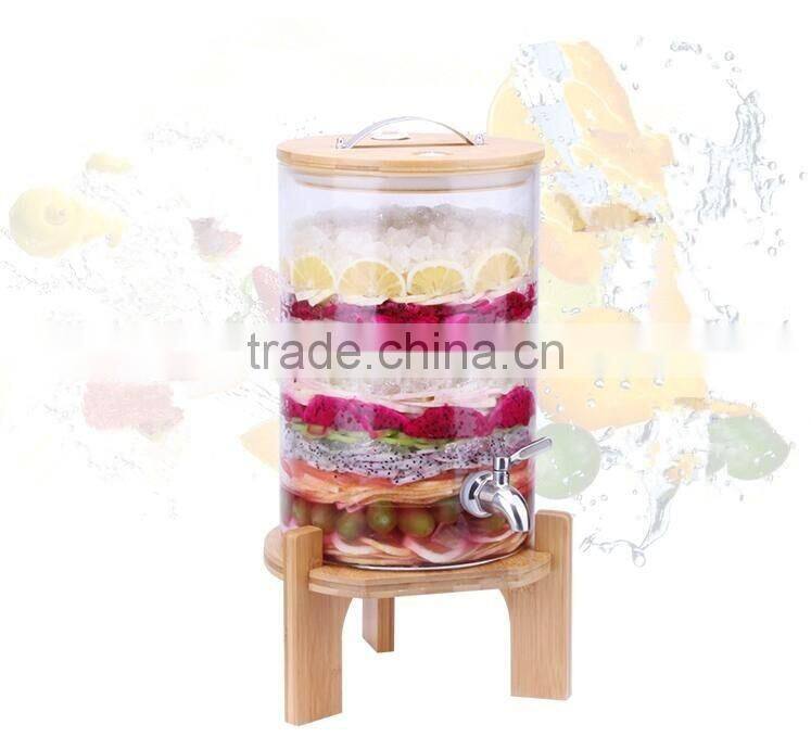 6L Clear Glass Beverage Dispenser Jar With Tap Round Glass Water Bottle