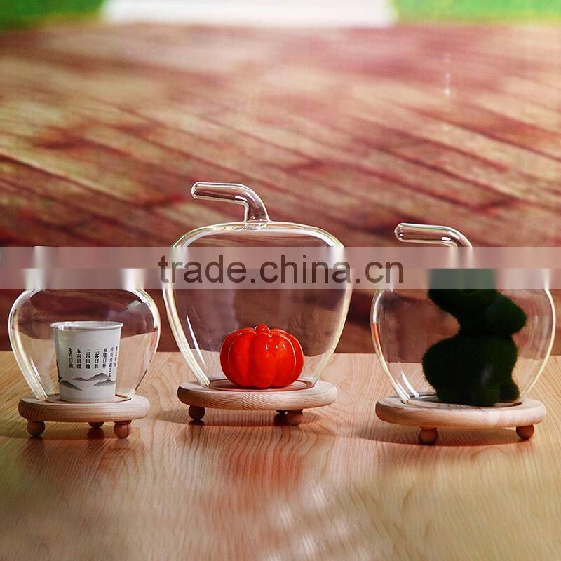 Home > Products > Glass Vase > Micro Landscape Ecological Meaty Plant Vase Apple Shape With Wooden Shape