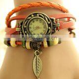 Xianjian Girlish Watch Factory Wholesale, Leaf Pendant Student Watch, Fashion Retro Genuine Leather Long Wristband Watch