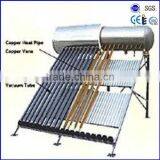 Pressurized solar water heater(thermosiphon) provide energy and get hot water by a efficient coppper coil fixed in water tank. Different from other common solar water heaters, this type could be used pressurized. As water in tank can store energy, when cold water goes through copper coil, it could absorb heat from water in tank. The copper coil is20-60 m long.