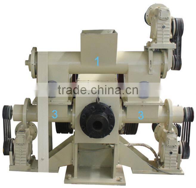 Two level feeding screw conveyor, No.1 Two way feeding conveyor, even feeding the material No.2 inspection window let the user check the feeding conditions No.3 Level two feeding conveyor, feeding the material and pre-compaction | ![]() |