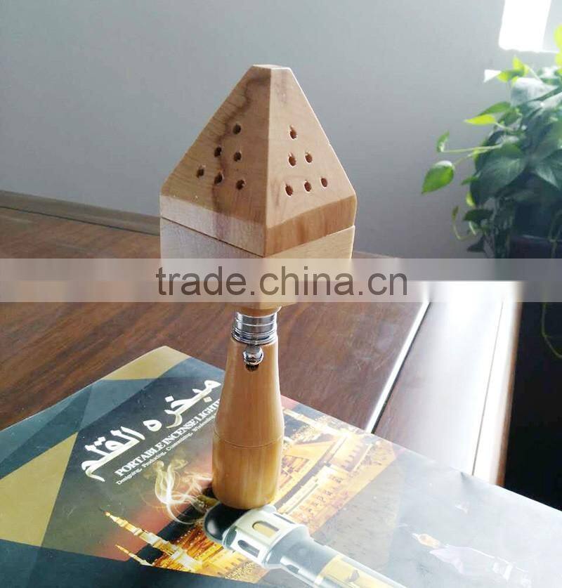 New Design Arabic Hollow Click Wood Mini Incense Burner With Lighter