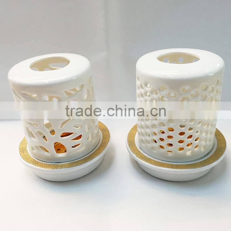 2016 Wholesale White Cylinder Shape Burner /hollow Out Ceramic Incense Burner