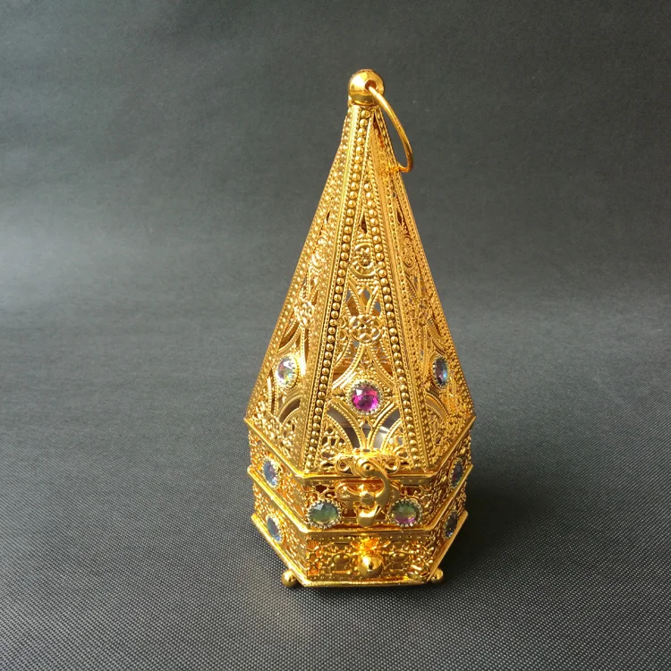 Wholesale Hot Sell Beautful Tower-shape Metal Incense Burner With Cryatsl and Hexagonal