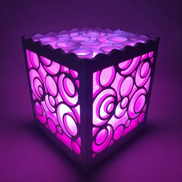 Wholesale Hot Sell Multi Color Light Cube Hollow Out LED PVC Plastic Table Light Use Battery For Bedroom Decorating