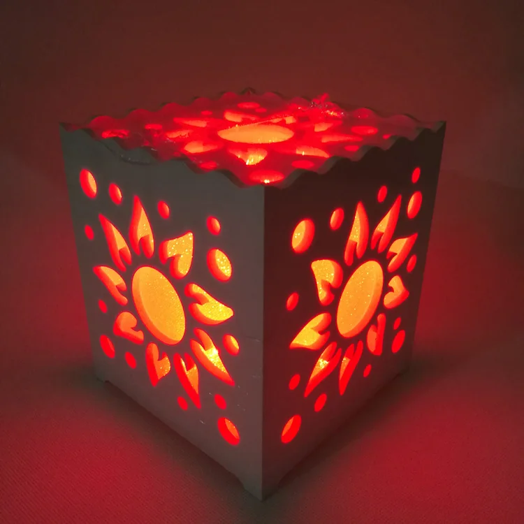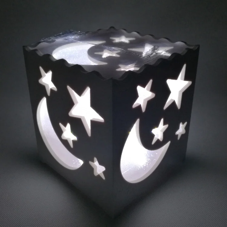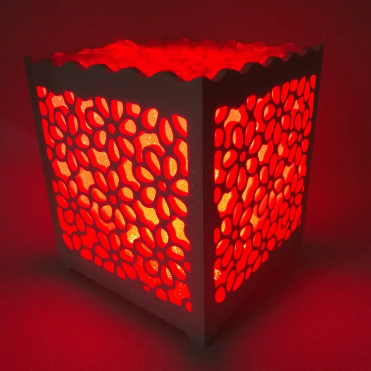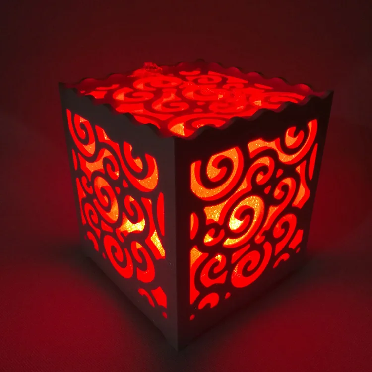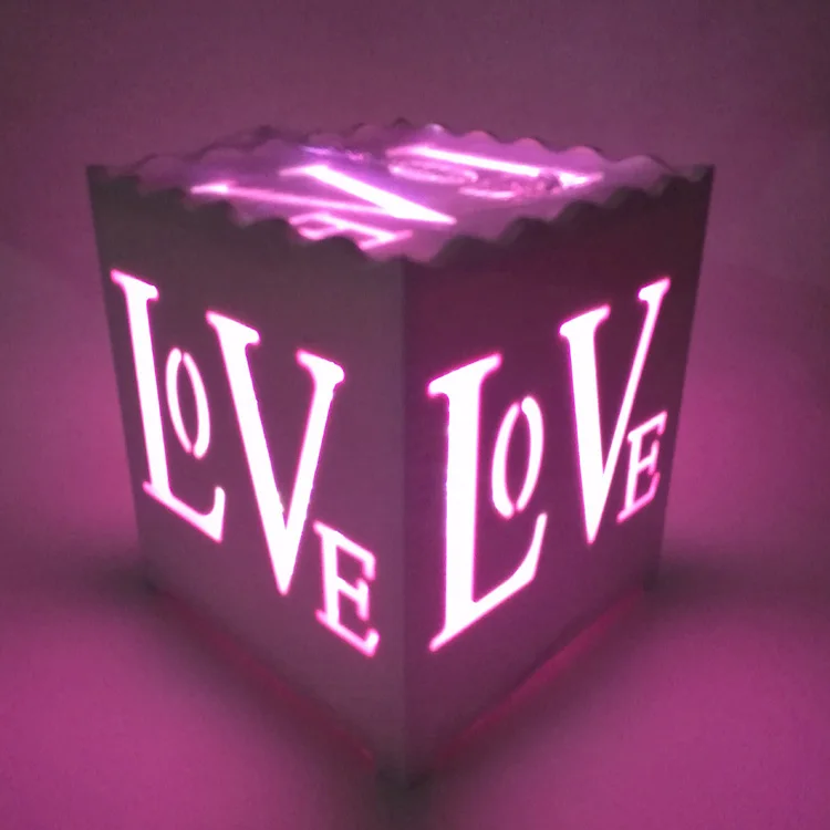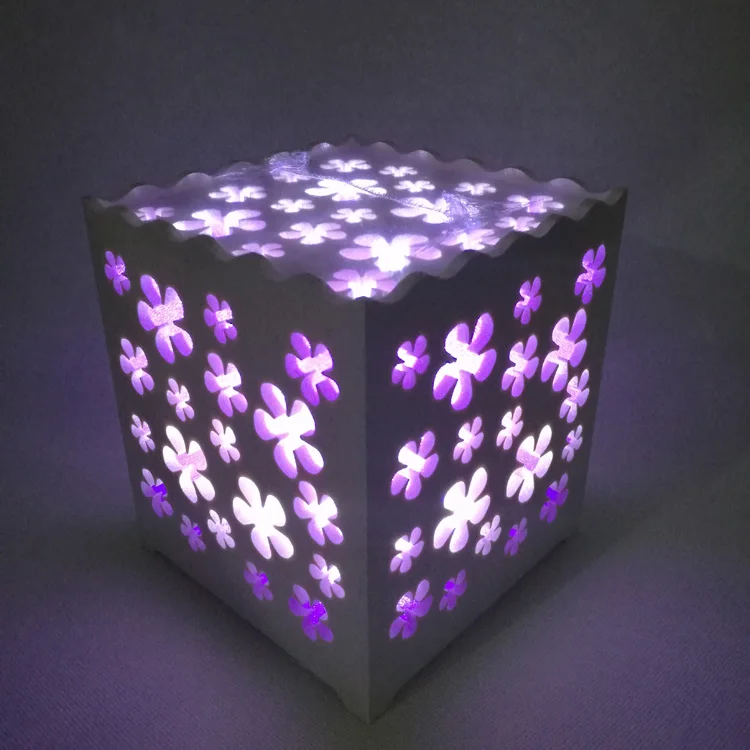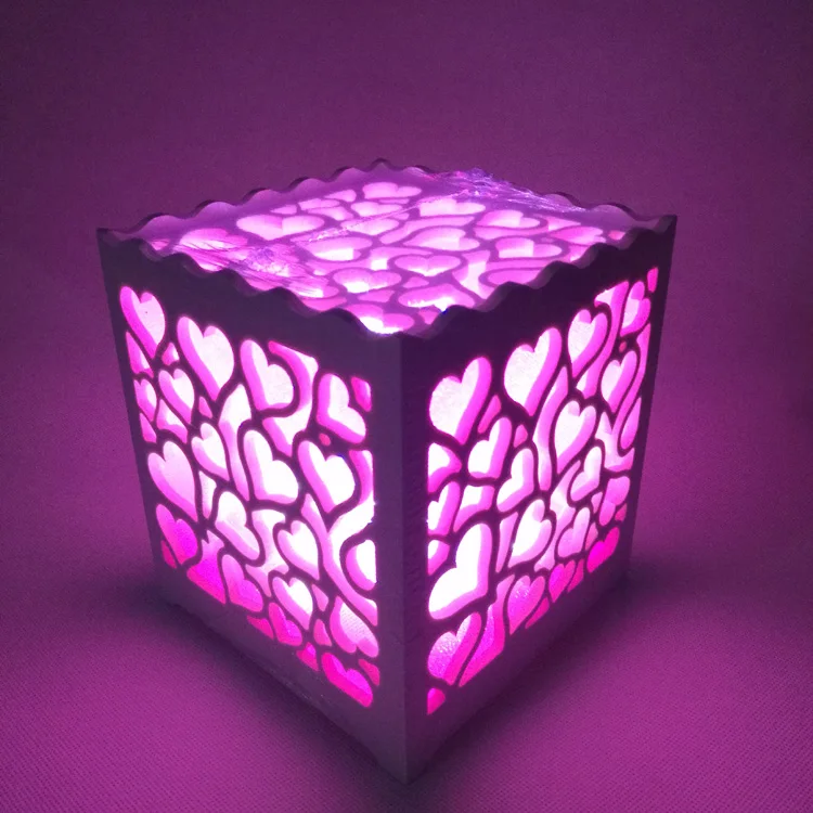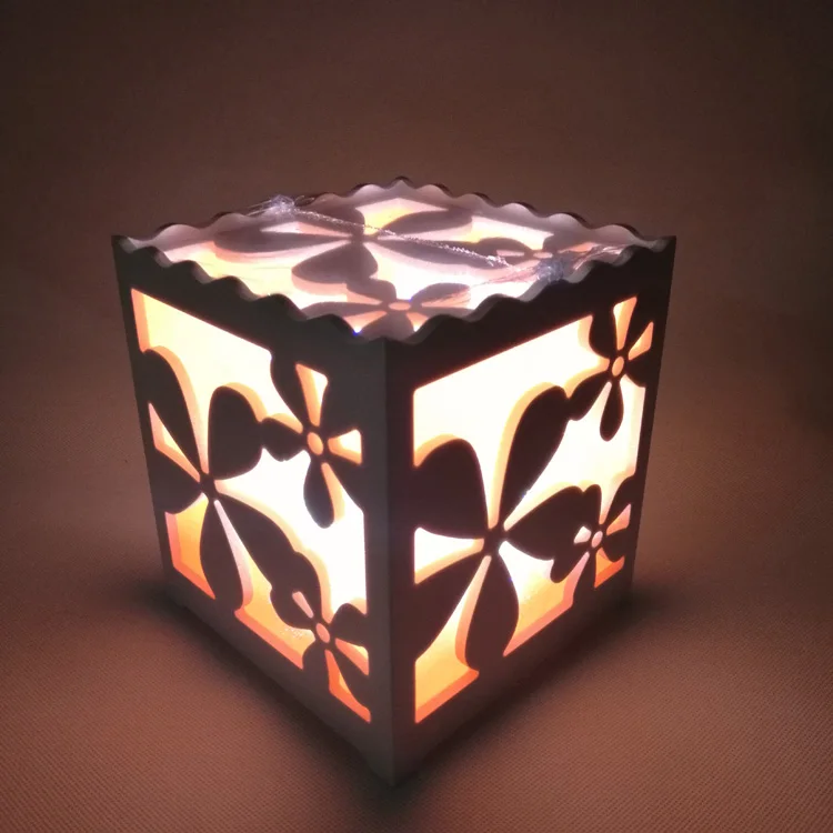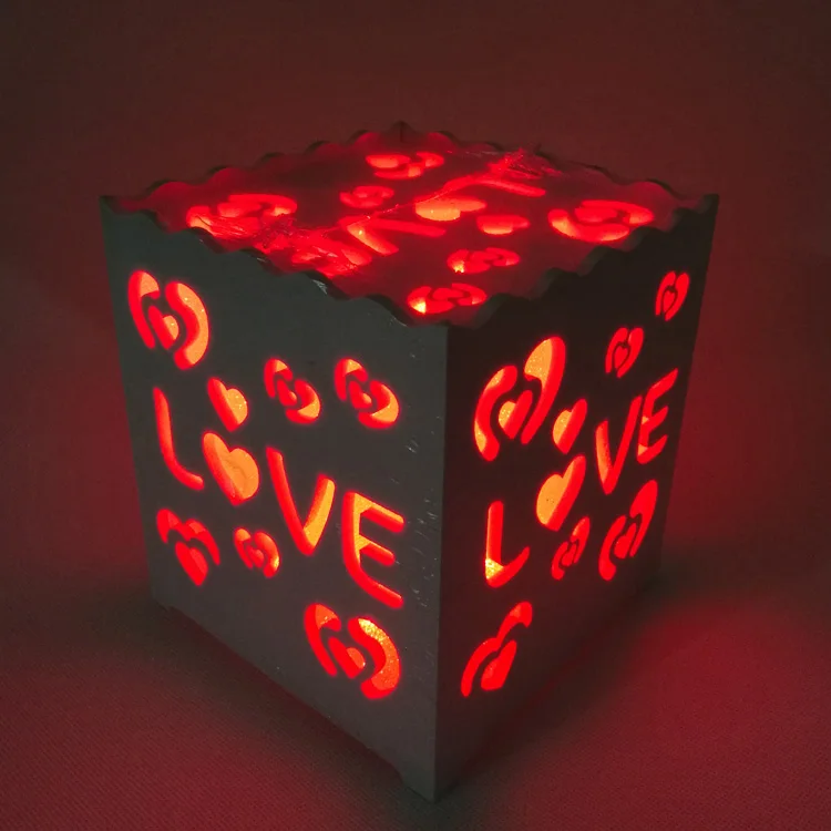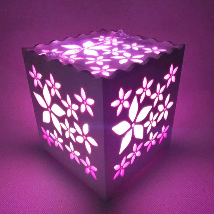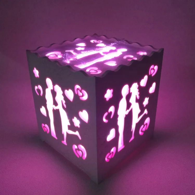 Wholesale Cuboid Hollow Out Multi-Color Light LED PVC Wood Plastic Table Light Use Battery For Bedroom Decorating