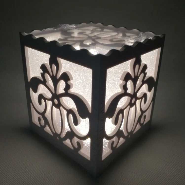 Cube Hollow Out LED PVC Plastic Table Light Use Battery For Bedroom Decorating