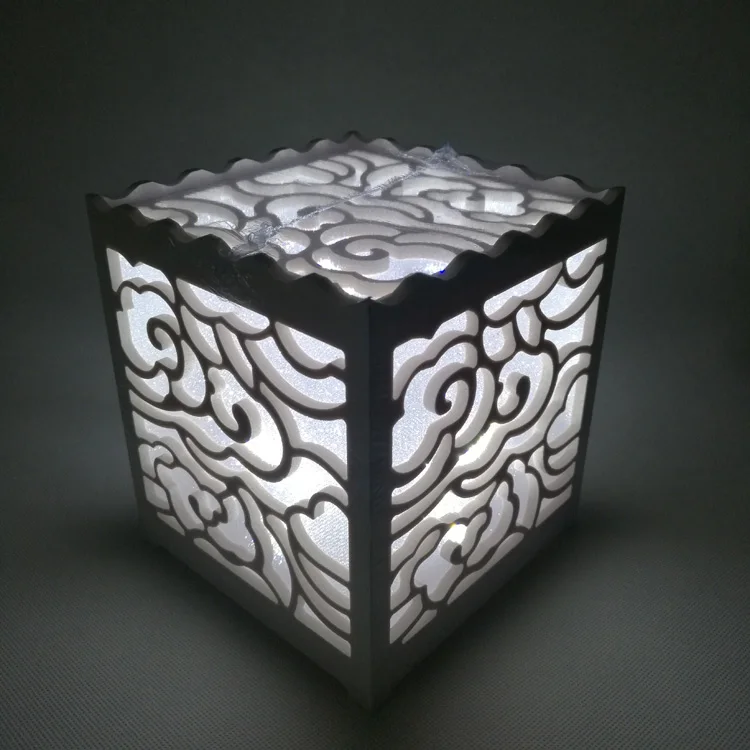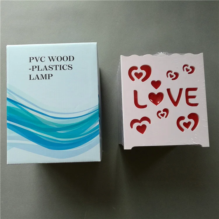 Wholesale Cuboid Hollow Out LED PVC Wood Plastic Table Light With Round Pins Plug For Bedroom Decorating