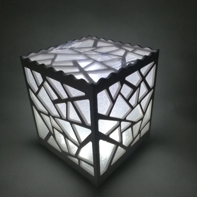 Wholesale Hot Sell Cube Hollow Out LED PVC Plastic Table Light With Round Pins Plug For Bedroom Decorating
