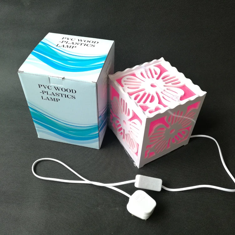 Wholesale Cuboid Hollow Out LED PVC Wood Plastic Table Light With Round Pins Plug For Bedroom Decorating