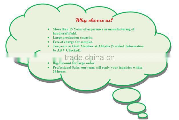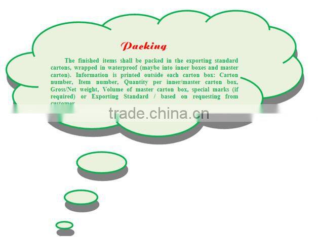 REFERENCE INFORMATION: We can make a wide variety of colors and sizes. Other additional photographs are available upon request. Besides, we can develop new designs according to customers' inquiries. Please kindly Contact us by email for more information on how we can add value to your offshore supply chain, we will be very happy to reply you at the soonest to send you the catalogs with price list & the photos to your email address directly.