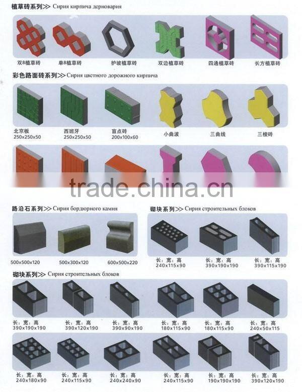 It produces various color-face bricks (layered material feeding),through-body tiles,lock linkage blocks, road curb bricks, hydraulic blocks,hollow blocks, perforated bricks, and standard bricks etc.