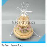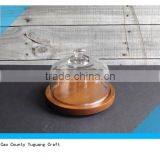 Natural Pine Wood Flower Plate With Glass Dome