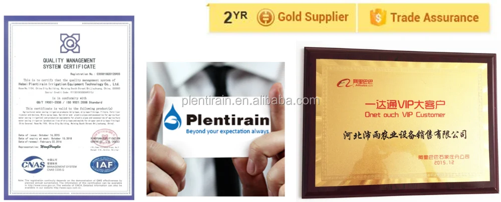 Hebei Plentirain Irrigation Equipment Technology Co., Ltd, an ISO 9001:2008 certified company, is one of the premier manufacturing and supplying company for drip and sprinkler irrigation products established in 2014, it carries the mission of providing trustworthy products which are manufactured with virgin raw material. The company follows the international production standard to improve our products to complete in the world market