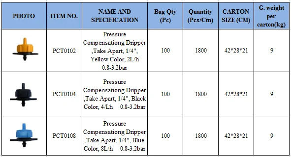 1. PC dripper deliver a precise amount of water regardless of changes in pressure due to long rows or change in terrain.