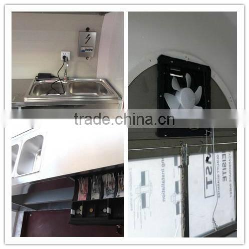 Body: | Whole square pipe welding frame, FRP & decorated external metal wall, Intermediate heat Insulation cotton, CE approved aluminum composite panel internal wall One big selling windows in one side One advertisement spaces under selling windows One door in the back Stainless steel working benches & related shelves High visibility tail light signal system |