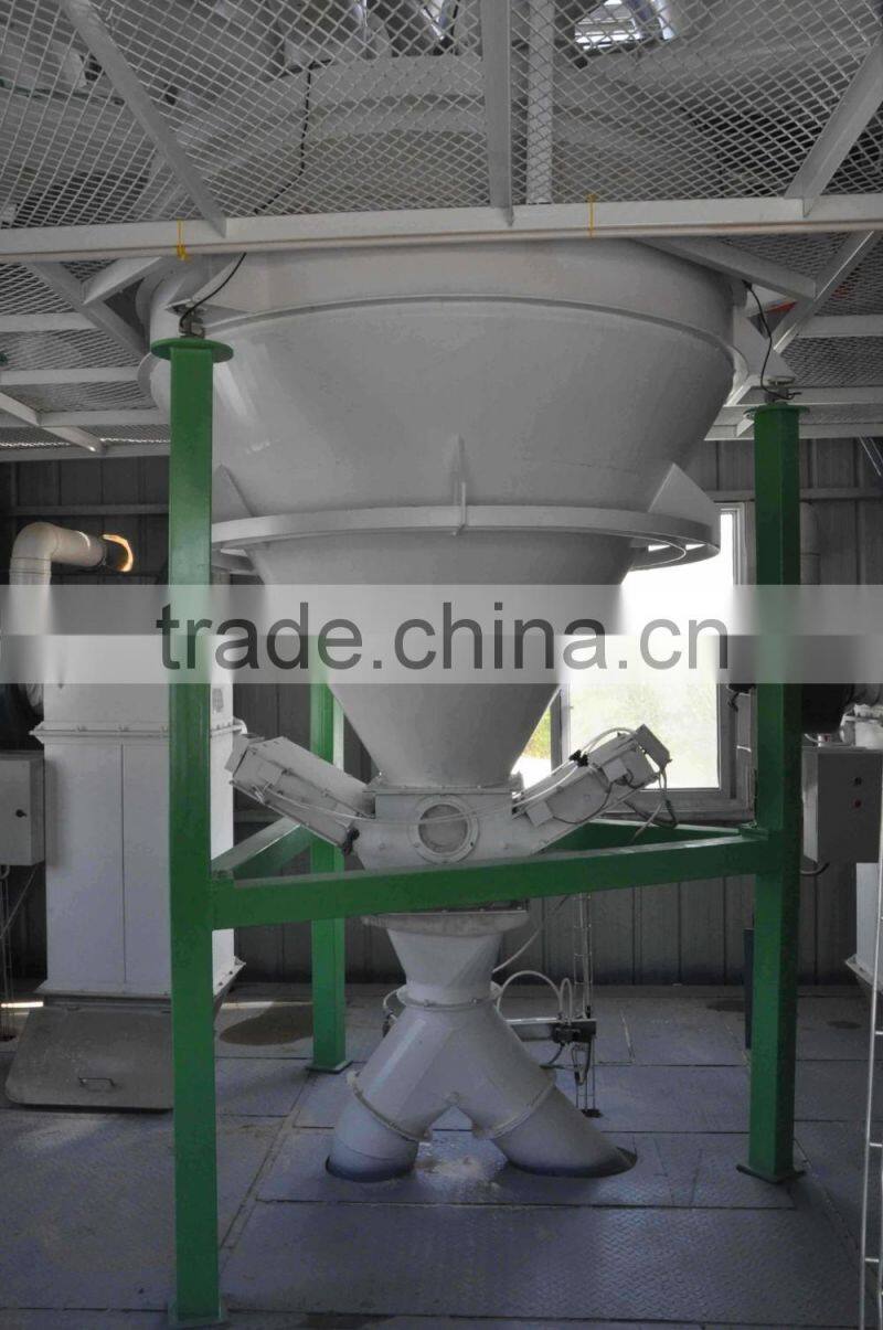 The conveyors are under the silos, used to deliver the materials to the batching scale. One is made by Stainless steel, it is used to deliver the vitamins or minerals etc.