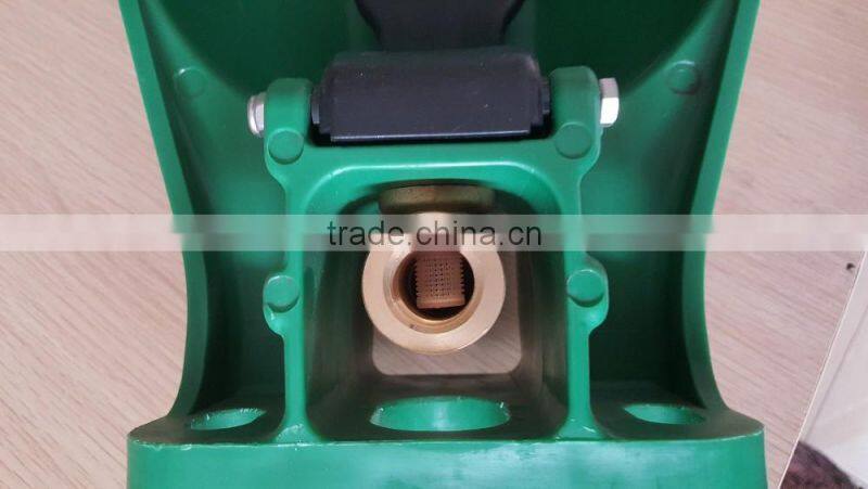 When the cow, sheep to drink water, arch plate plate push water outlet valve, water from the water into the cup for cattle, sheep drinking; after drinking water, plate in the spring under the action of the reset, cut off the water, stop the water.