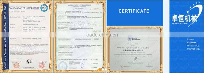 business established more than 10 years ago, is considered as one of Chinese most respected and experienced suppliers of snack food equipment, accessories and services.We also received a number of certification