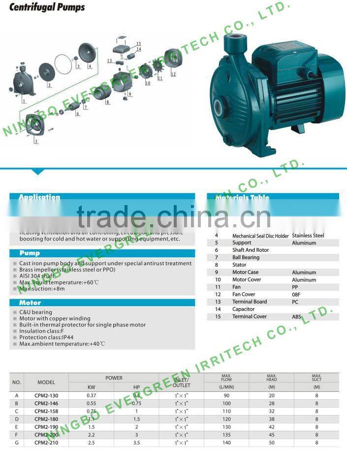 1.5HP 2HP Anti-rust Electric Power Water Irrigation Centrifugal Pumps