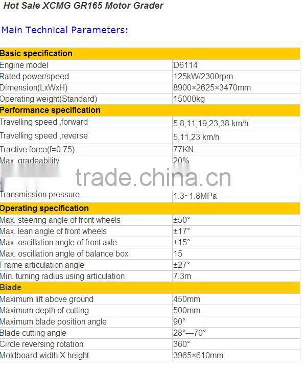 Home > Products > Motor Grader > China Hot Sale XCMG Motor Grader GR165 Used Loader Mini Grader