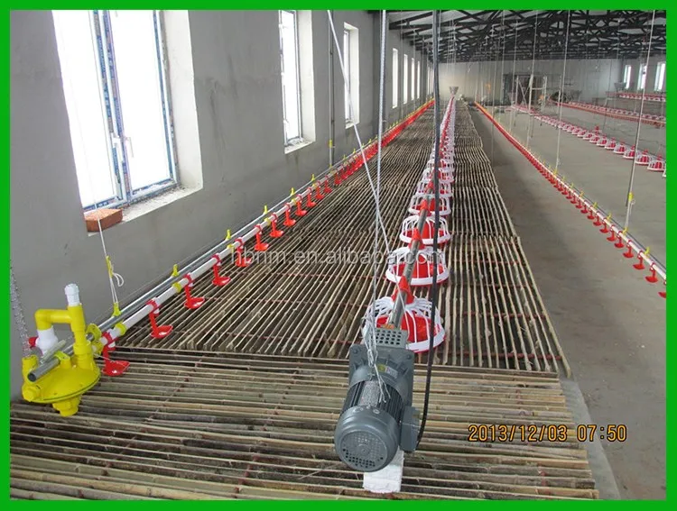 your chicken houses. There is one feed sensor at the end of main feed line, which controls on/off of the motor automatically to achieve the aim of automatic feeding. The system can reduce labor intensity effectively,