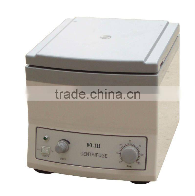 80-1B Centrifuge is an improvement on 80-1. It is possessed of these special features following: It is beautiful in appearance. Large in capacity but small in bulk and has a complete function and a stable performance, you can chose the speed that you need at the set range, and it can keep balance automaticly, in addition, it has a little rate of increase in temperature and can be used efficiently and widely. It is a dependable instrument for qualitative analysis of serum, plasma and immunity in hospitals or chemical and biochemical laboratories.
