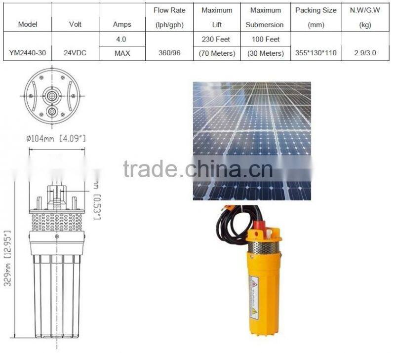 9300 6LPM 230 Feet Solar Submersible/solar dc Water Pump/24 Volt Water Pump